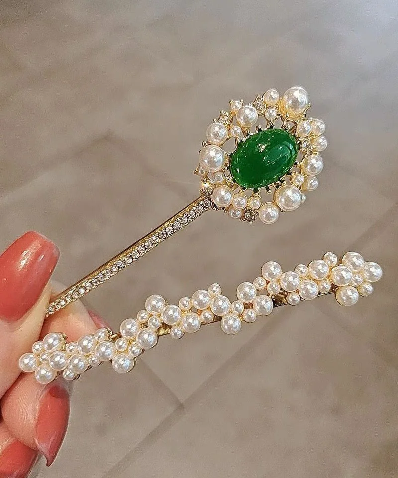 Made of fine Copper Overgild Zircon Pearl Emerald Two-Piece Set.