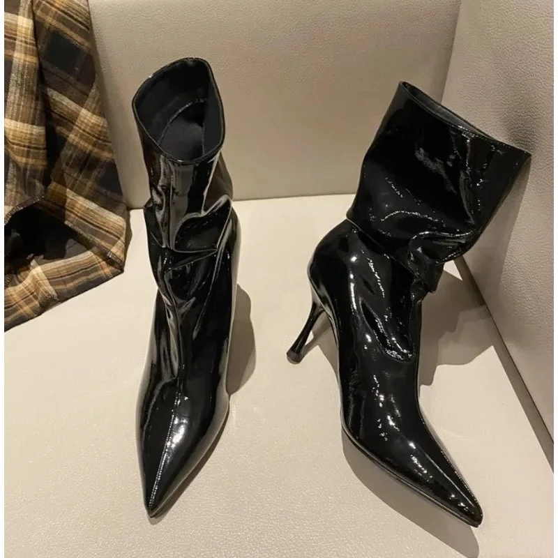 LBSFY -Street Style Thin High Heels Ankle Boots Women Patent Leather Autumn Winter Zipper Shoes Sexy Banquet Prom Pumps